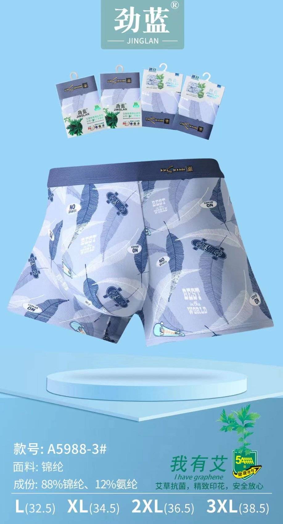 Jin Blue A5988-3 Эрэгтэйчүүдийн мөсөн торгон загварын карт өмд (санамсаргүй өнгө) (1 дунд хайрцаг * 20 ширхэг)