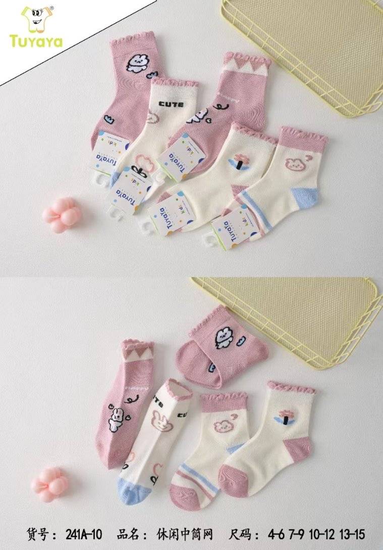 Tu Yaya 241D / A Хөвгүүд ба Охидын хагас торон завины оймс 4-12 жил M-XL (санамсаргүй өнгө) (1 хайрцаг * 10 хос)