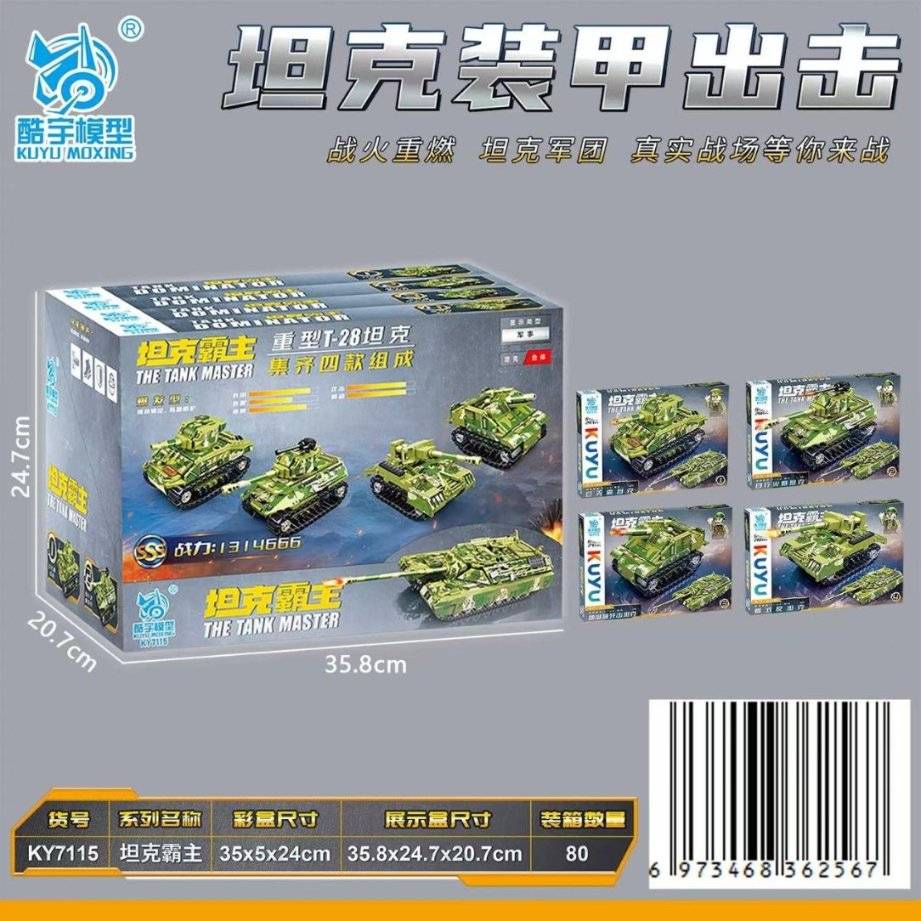 Kuyu KY7115 хайрцагтай том хэмжээтэй T-28 хүнд танк (4 ширхэг / дэлгэцийн хайрцаг) (1 хайрцаг * 20 дунд хайрцаг * 4 ширхэг)