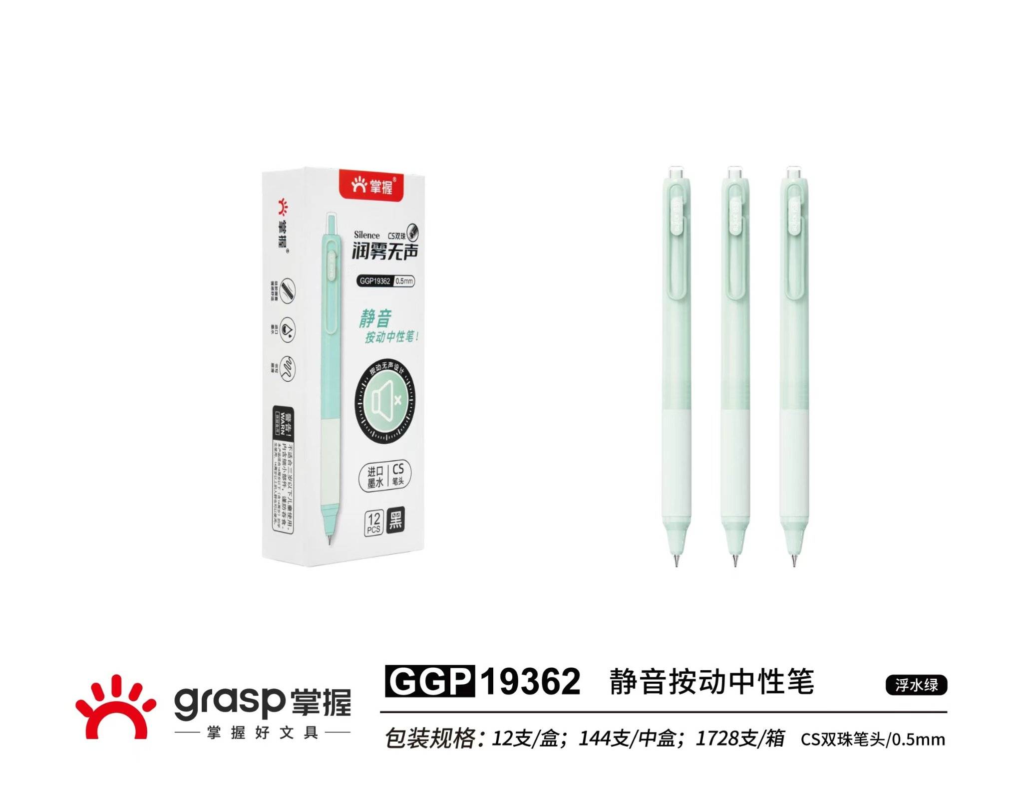 Мастер 19362 дуугүй хэвлэх төвийг сахисан үзэг Ногоон туйл - Хар (1 хайрцаг * 12 дунд хайрцаг * 12 хайрцаг * 12 Pcs)