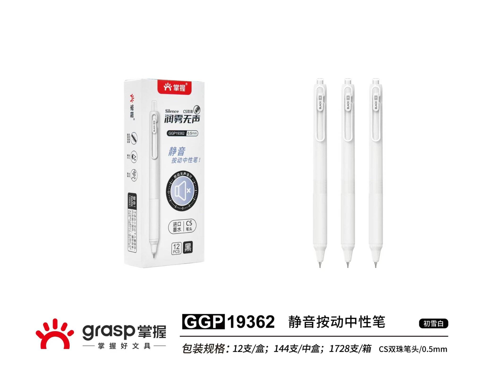 Мастер 19362 дуугүй хэвлэх төвийг сахисан үзэг цагаан туйл - хар (1 хайрцаг * 12 дунд хайрцаг * 12 хайрцаг * 12 Pcs)