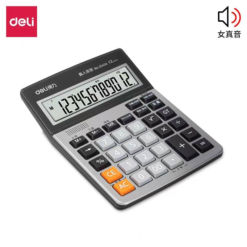 Deli 1541A дуут тооцоолуур (Мөнгө) (1 хайрцаг * 4 дунд хайрцаг * 20 ширхэг)