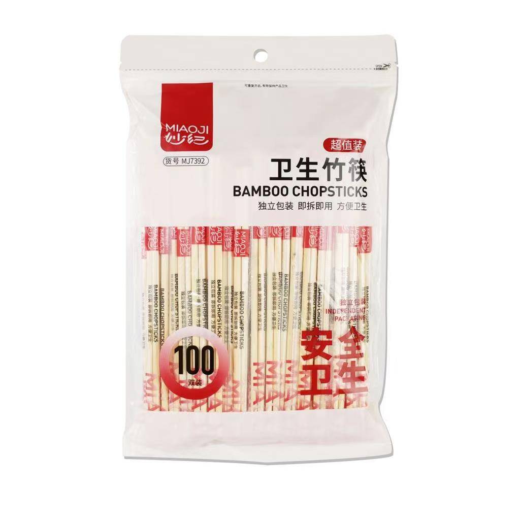Miaoji 7392-Ариун цэврийн хулс Chopsticks 100 боодол (1 хайрцаг * 20 боодол)