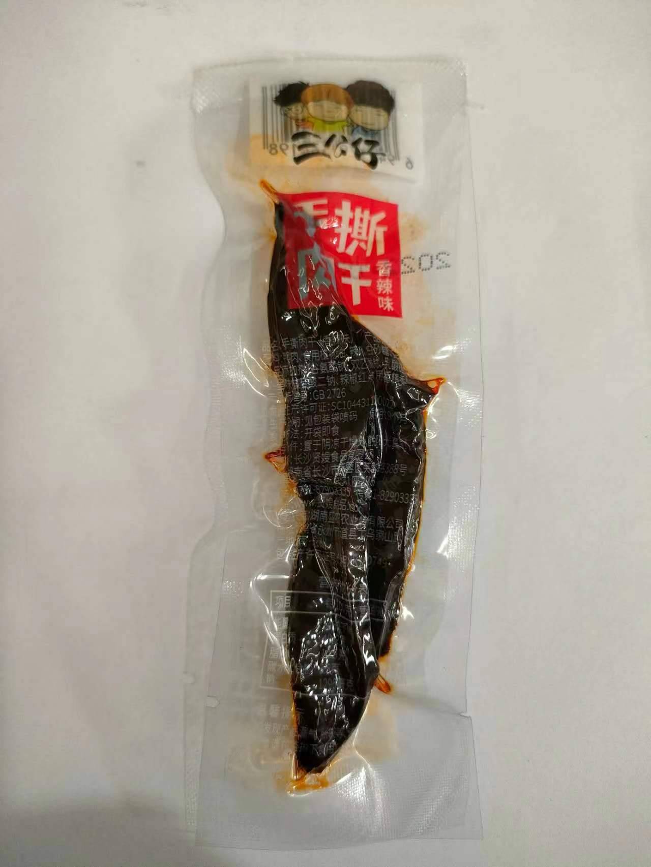 Гурван хүүхэлдэй гар урагдсан jerky халуун ногоотой 12г (1 хайрцаг * 12 дунд хайрцаг * 30 боодол)