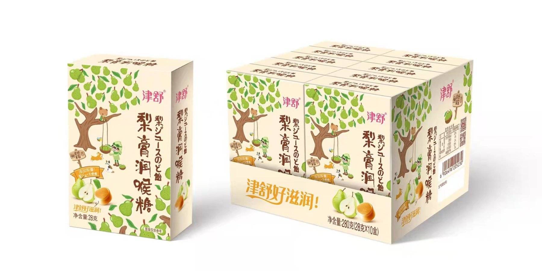 Jinshu лийр тос хоолой Lozenges 28g (1 хайрцаг * 12 дунд хайрцаг * 10 жижиг хайрцаг)
