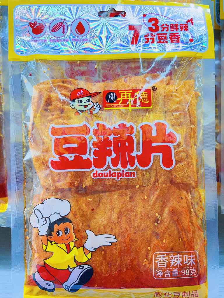 Zhou Zai De Bean халуун ногоотой зүсмэлүүд халуун ногоотой амт 98г (1 хайрцаг * 50 багц)