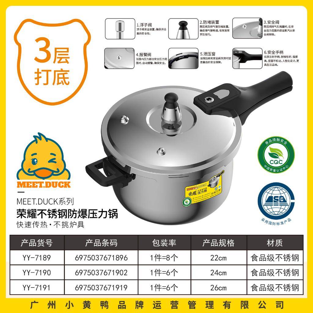Бяцхан шар нугас 7189 Хүндэт зэвэрдэггүй ган дэлбэрэлт тэсвэртэй даралт агшаагч 5L / 22CM