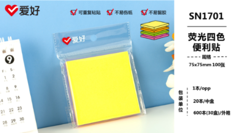 Хобби SN1701 Post-it тэмдэглэл < флюресцент > 75 × 75 (1 хайрцаг * 30 хайрцаг * 20 хувь)