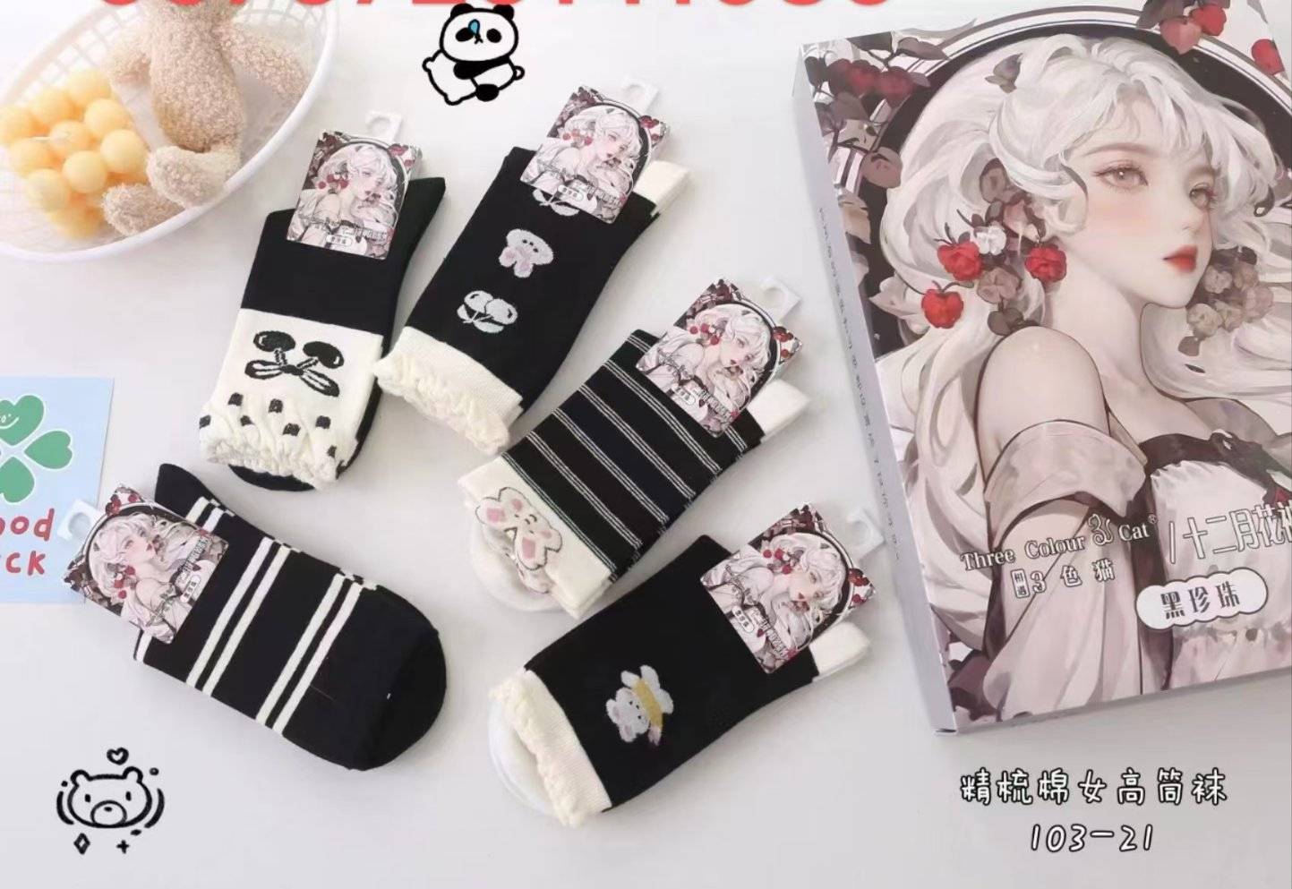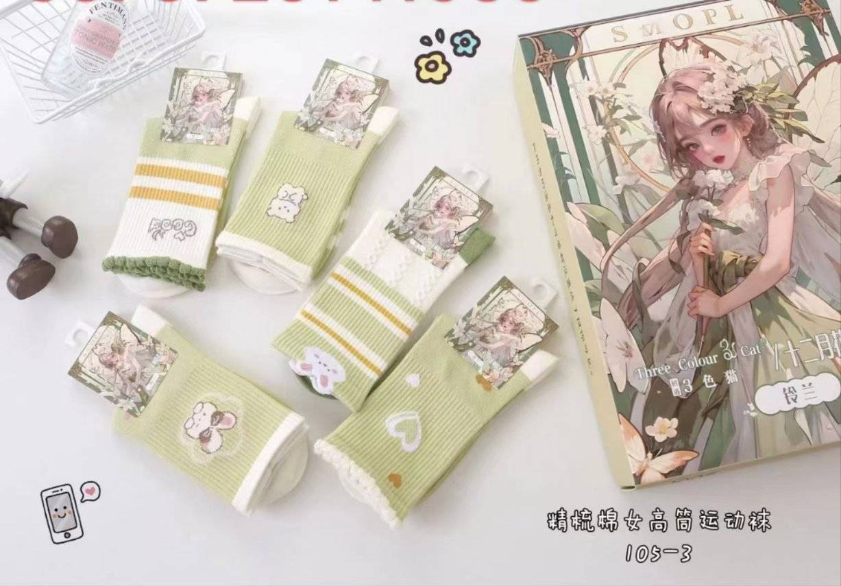 Гурван өнгийн муур 305 энгийн дунд хоолой эмэгтэй оймс (санамсаргүй өнгө) (1 дунд цүнх * 12 хос)