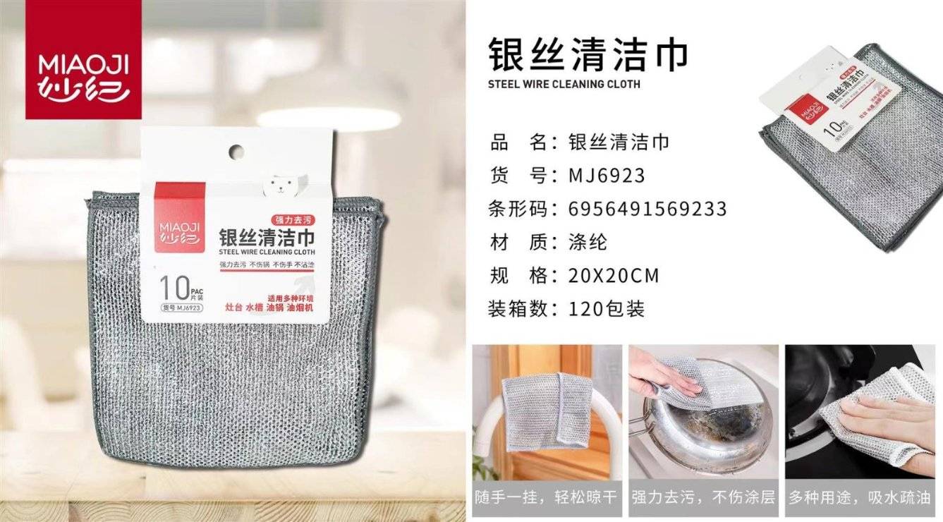 Miaoji 6923 мөнгөн утас цэвэрлэх алчуур 20 * 20CM (10 ширхэг) (1 ширхэг * 120 хайрцаг)