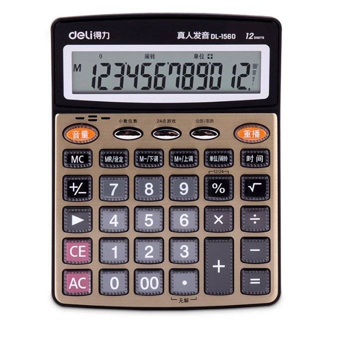 Deli 1560 дуут тооцоолуур (1 хайрцаг * 4 дунд хайрцаг * 20 нэгж)