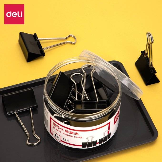 Deli 8561-1 # Хар урт сүүл тасалбар клип 51мм (Цилиндр) (Хар) (1 хэсэг * 48 цилиндр)