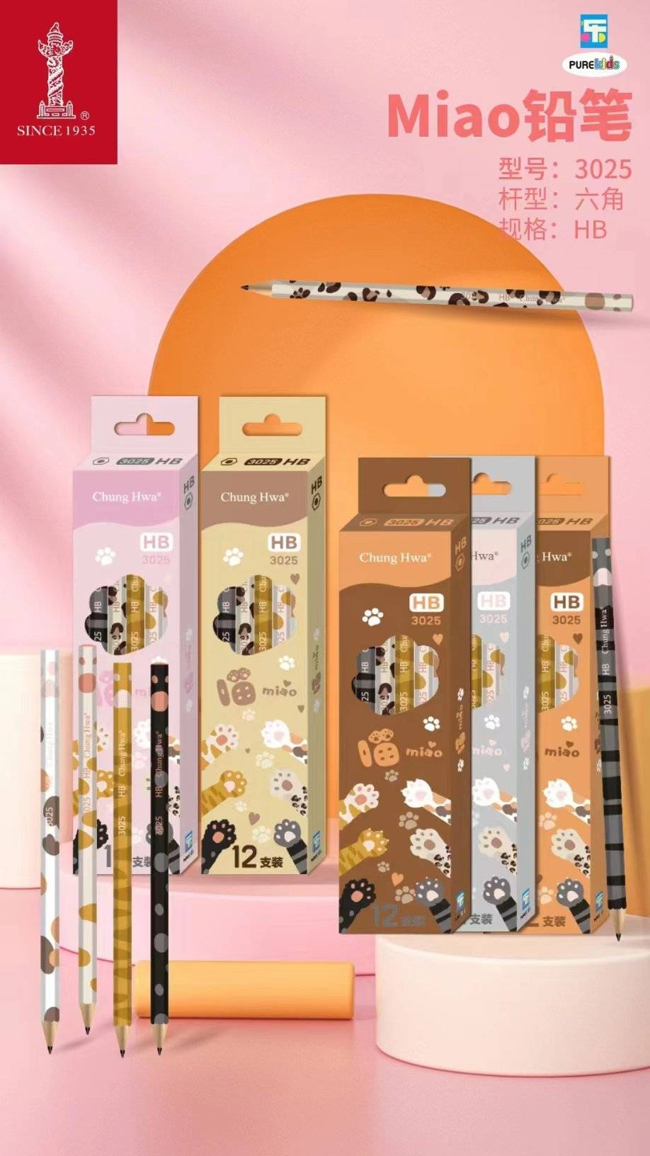 Zhonghua 3025HB муур зураас цуврал зургаан өнцөгт саваа харандаа (1 хэсэг * 144 хайрцаг)