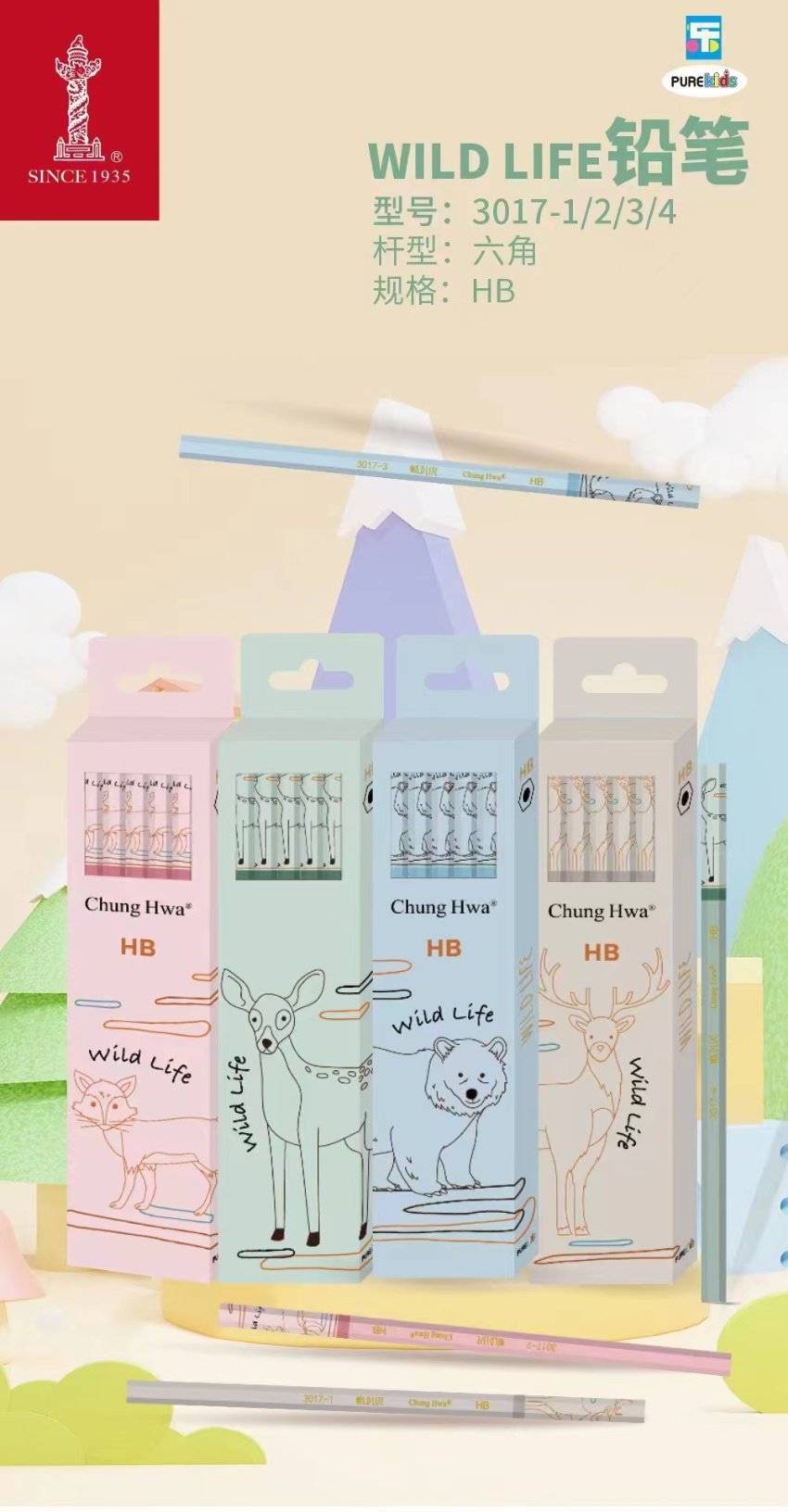 Zhonghua 3017HB зургаан өнцөгт саваа харандаа (12 ширхэг / хайрцаг) (1 хэсэг * 12 дунд хайрцаг * 12 жижиг хайрцаг)