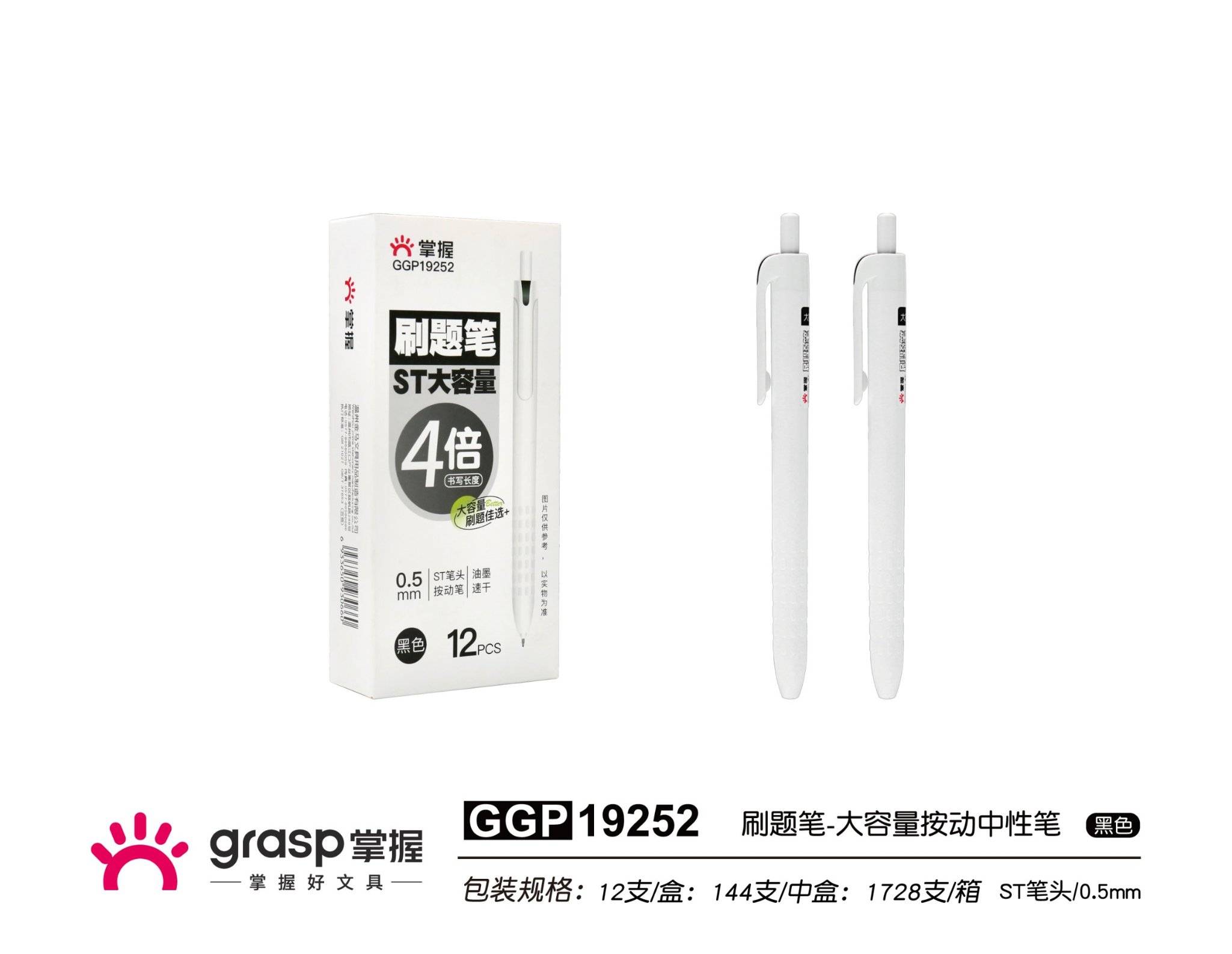 Мастер 19252 Том багтаамжтай түлхэх төвийг сахисан үзэг хар