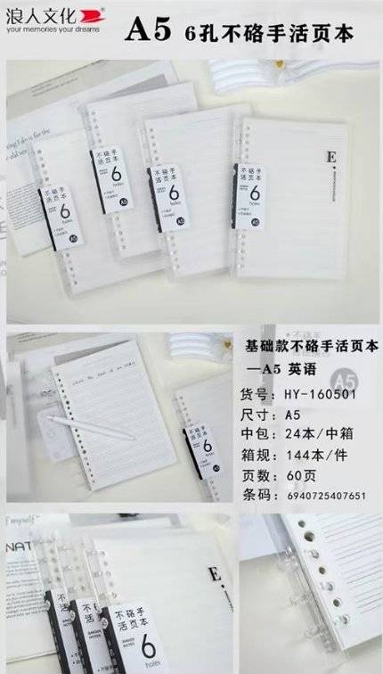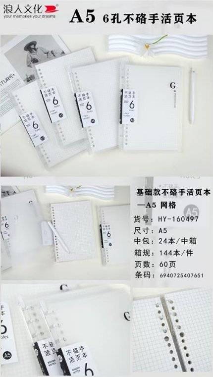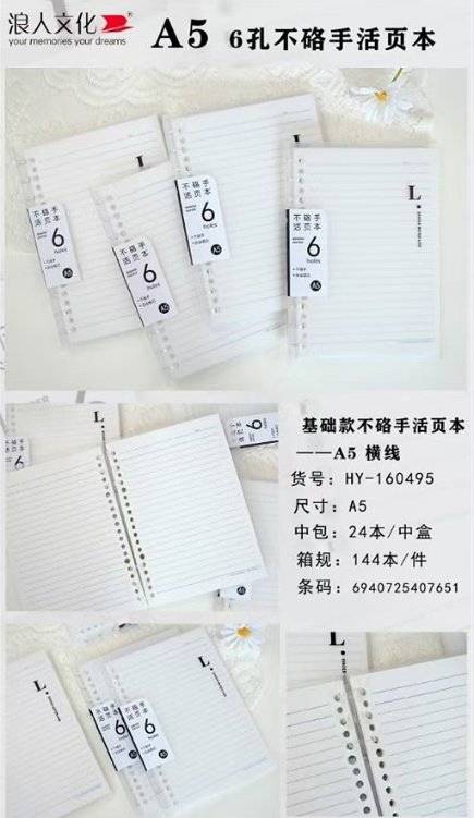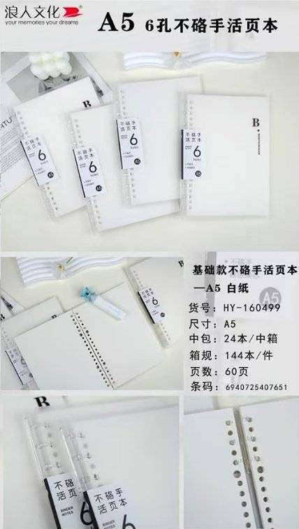 Ronin HY160499 үндсэн (6 нүхтэй цагаан цаас) холбогч A5 (1 хайрцаг * 144 хуулбар)