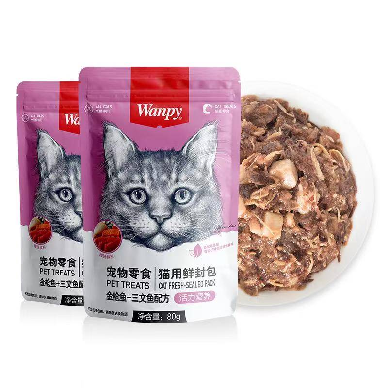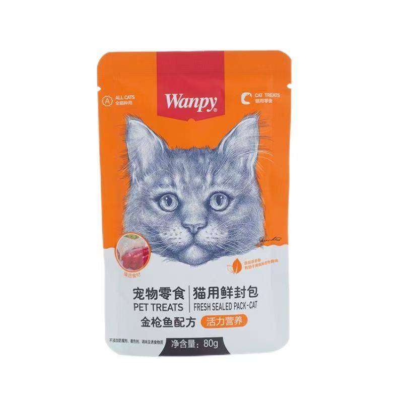 Wanpy Гэрийн тэжээвэр амьтдын зууш Муур (Vitality Nutrition) Шинэ дугтуй Туна загасны томъёо 80г (1 хайрцаг * 10 дунд хайрцаг * 15 уут)