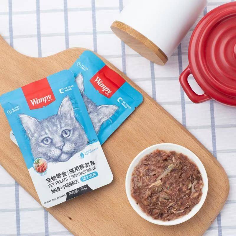 Wanpy Pet Snack Cat (Vitality Nutrition) Шинэ дугтуй Туна + Жижиг Whitebait Formula 80g (1 хайрцаг * 10 дунд хайрцаг * 15 уут)