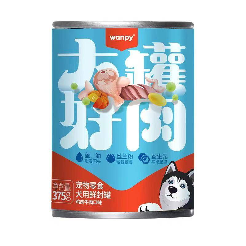 Сайн махны цуврал Wanpy том тогоо Гэрийн тэжээвэр амьтдын зууш Тахианы мах, үхрийн махны амт нохой тогоо 375г (1 хайрцаг * 24 лонх)