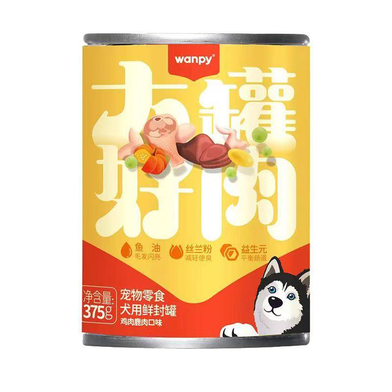 Wanpy Сайн махны цувралын том тогоо Гэрийн тэжээвэр амьтдын зууш Нохой тогоо Тахианы мах Venison амт 375g (1 хайрцаг * 24 шил)