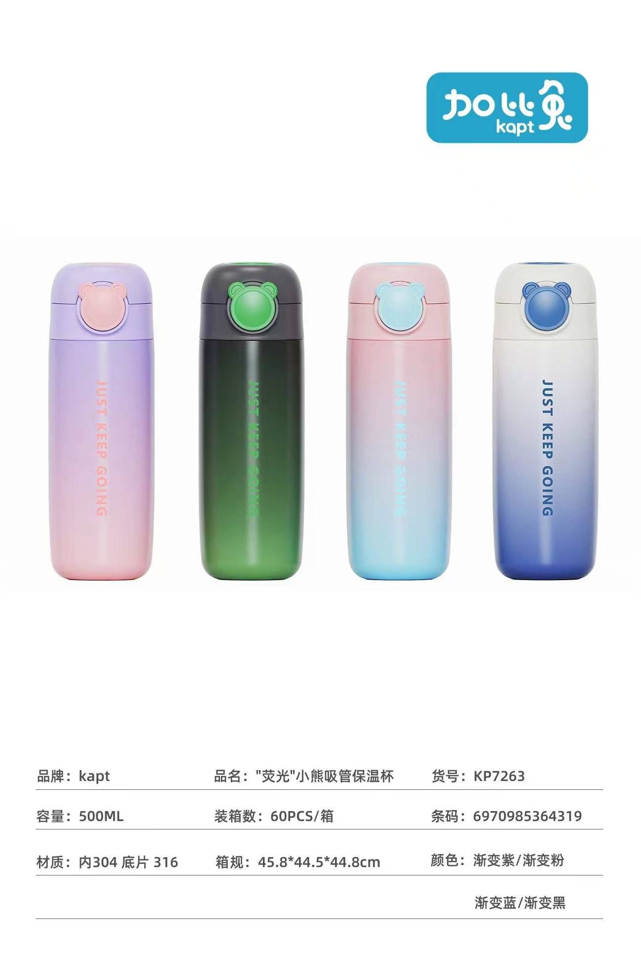 Gabi туулай флюресцент аажмаар өөрчлөгдөх баавгай сүрэл термос аяга 500ML (1 хэсэг * 60 хэсэг)