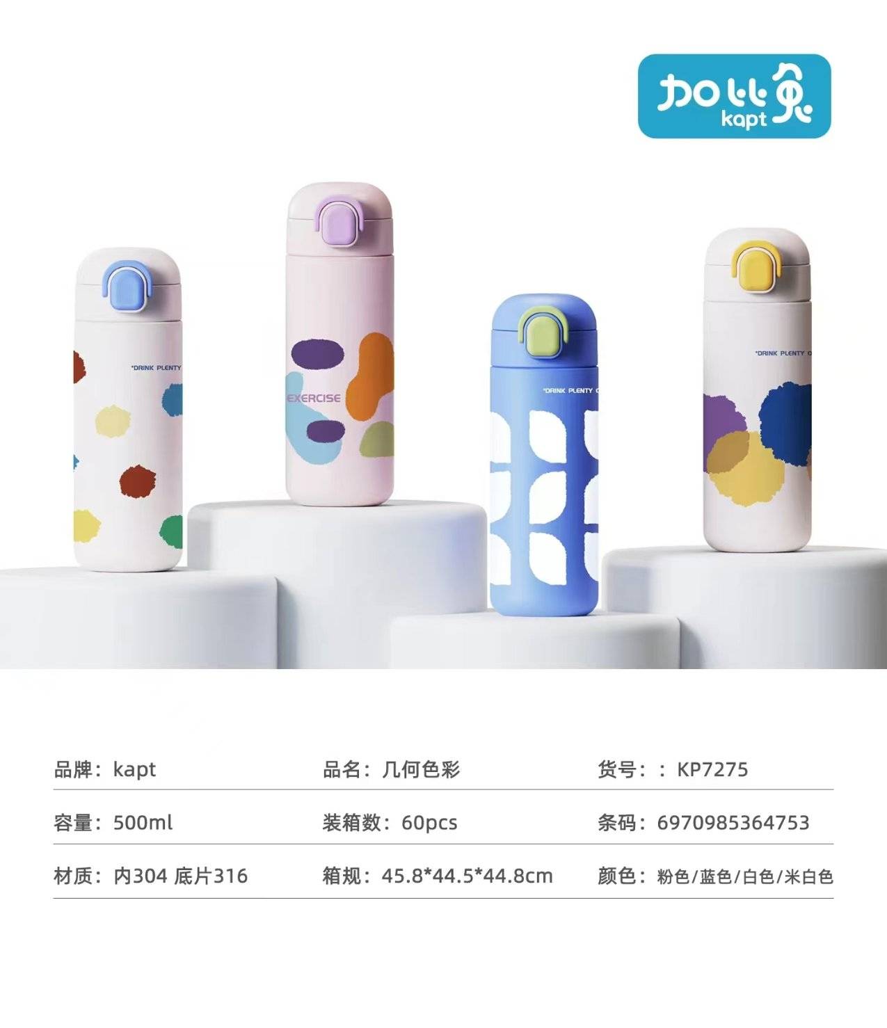 Габи туулай геометрийн өнгөт сүрэл No 1 Thermos Cup 500ML (1 ширхэг * 60 ширхэг)