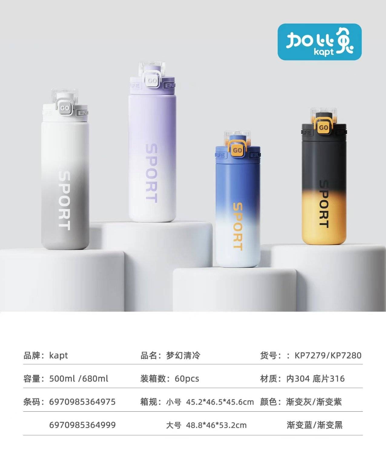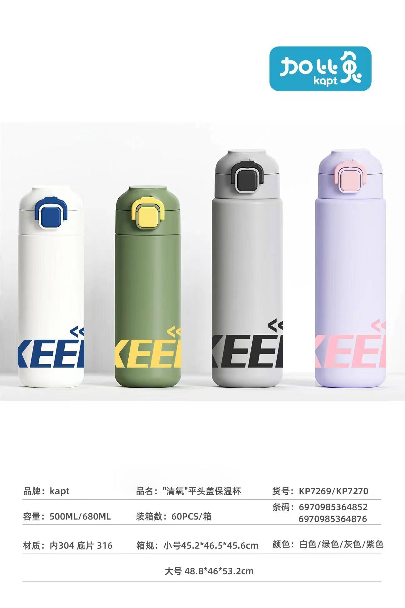 Gabi туулай хүчилтөрөгч хавтгай толгой нөмрөг термос аяга 680ML (1 хэсэг * 60 хэсэг)