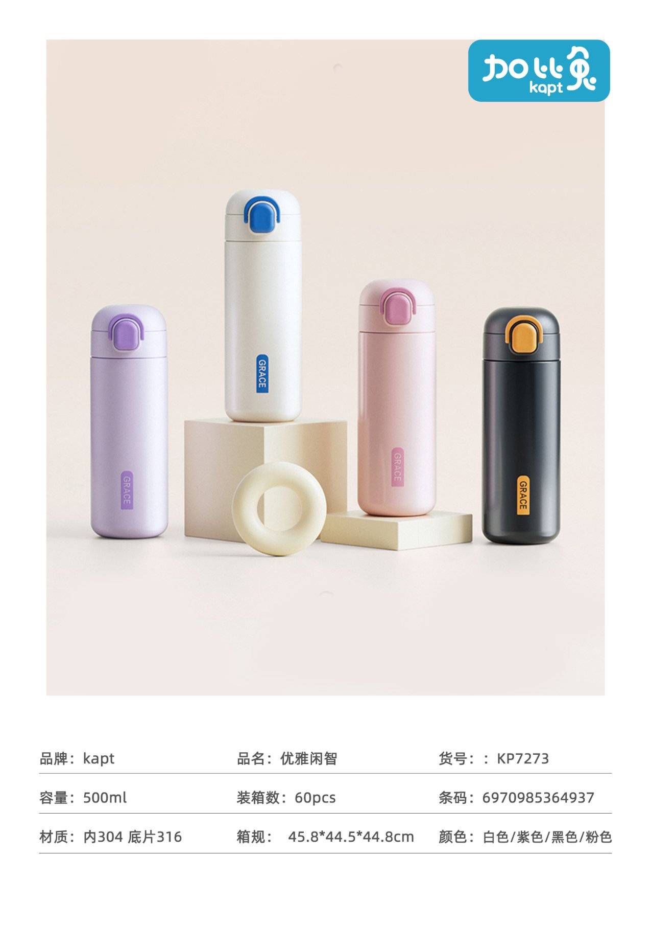 Gabi туулай хүчилтөрөгч хавтгай толгой нөмрөг термос аяга 500ML (1 хэсэг * 60 хэсэг)