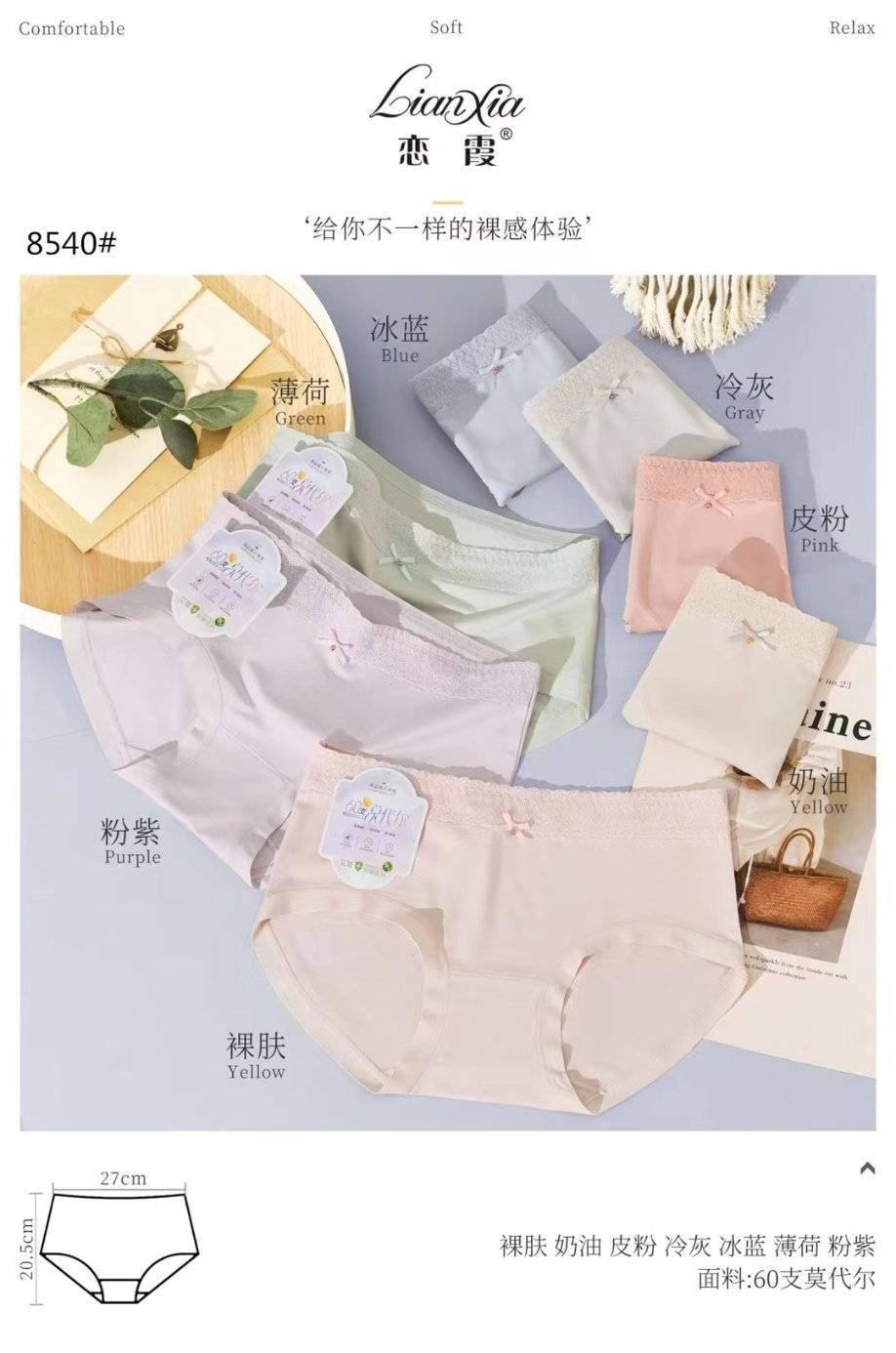 Lianxia 8540 эмэгтэй модны бактериостатик дотуур хувцас (1 багц * 10 ширхэг)