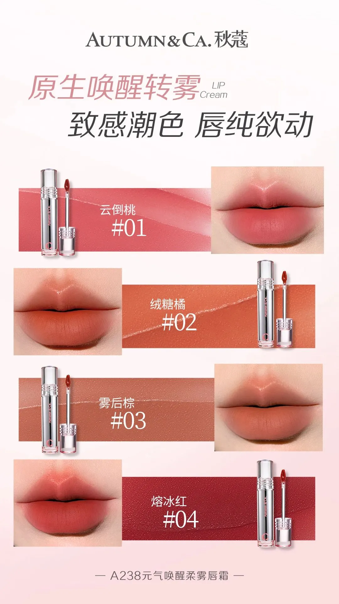 A238 Qiukou Vitality сэрэх зөөлөн манан уруулын тос 03 манан дараа хүрэн