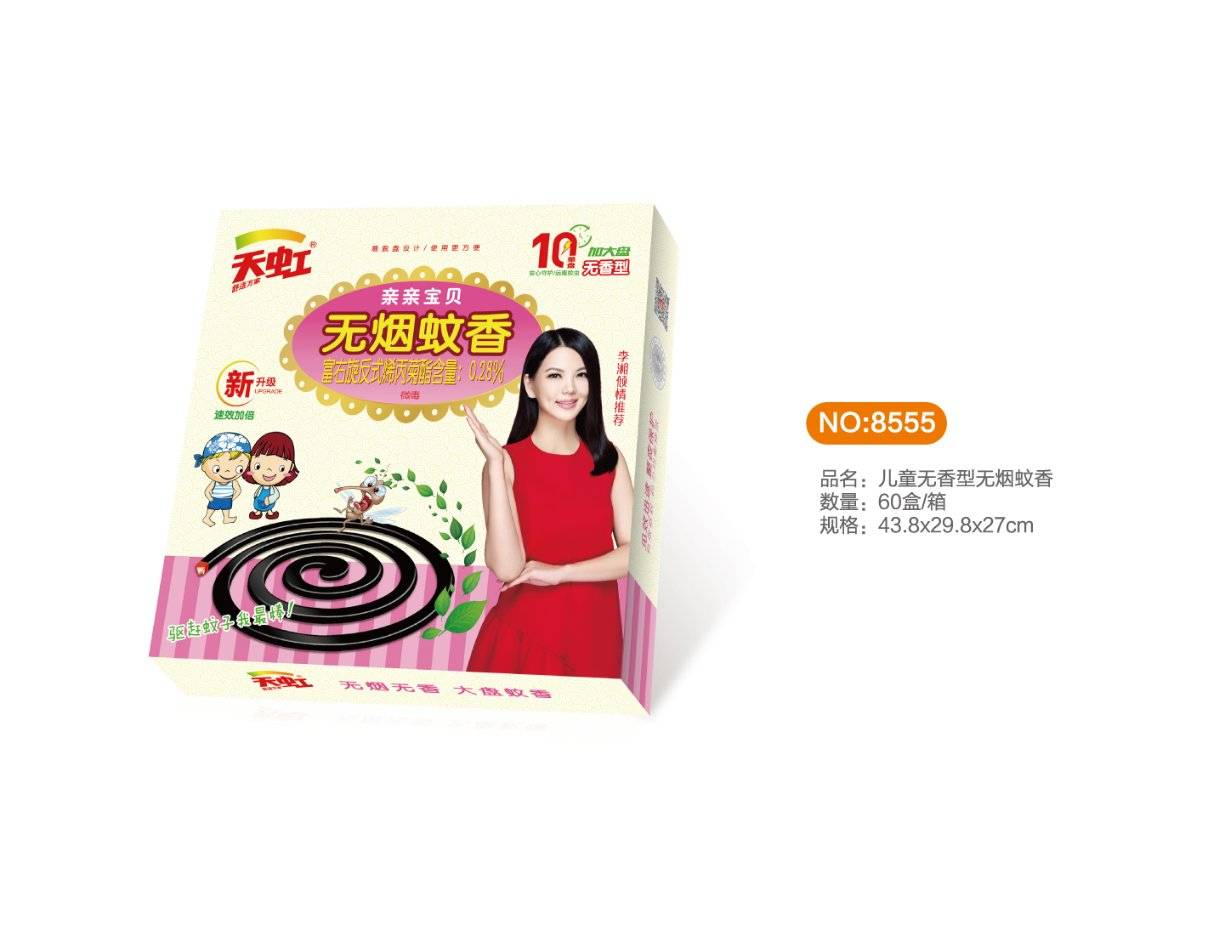 Солонго-8555 хайрцаг шумуул ороомог Baby утаагүй ба үнэргүй шумуул ороомог 10 тавиур (1 хайрцаг * 60 хайрцаг)