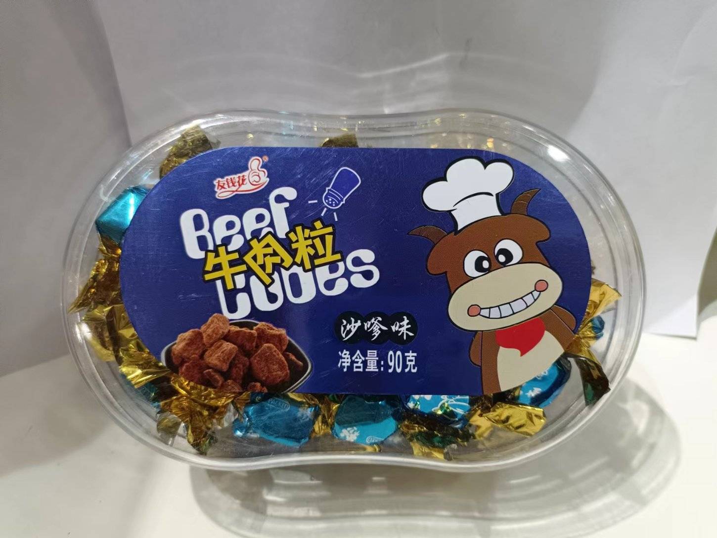 Youqian цэцэг үхрийн мах үр тариа Satay амт 90г (1 хайрцаг * 24 хайрцаг)