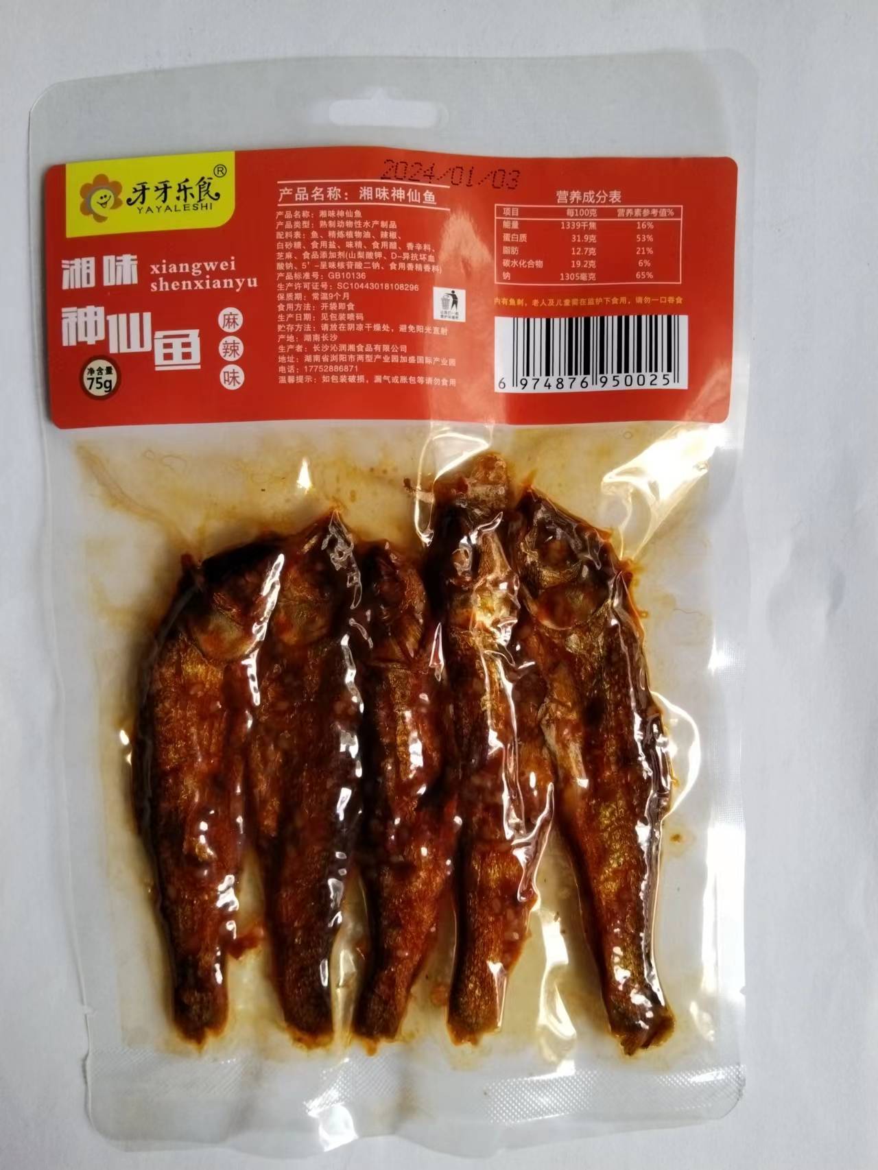Yaya Le Shi Xiang Wei үлгэрийн загас халуун ногоотой амт 75г (1 хайрцаг * 50 багц)