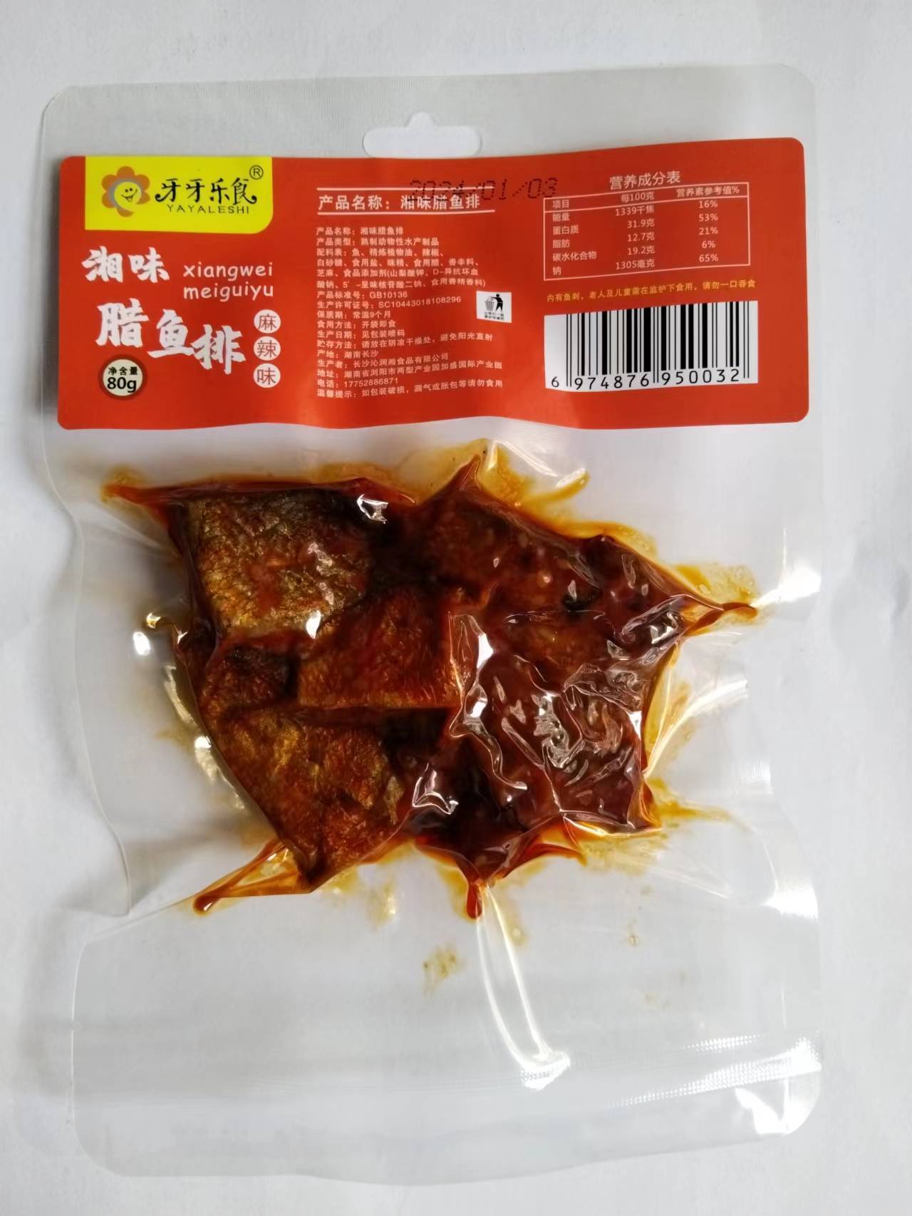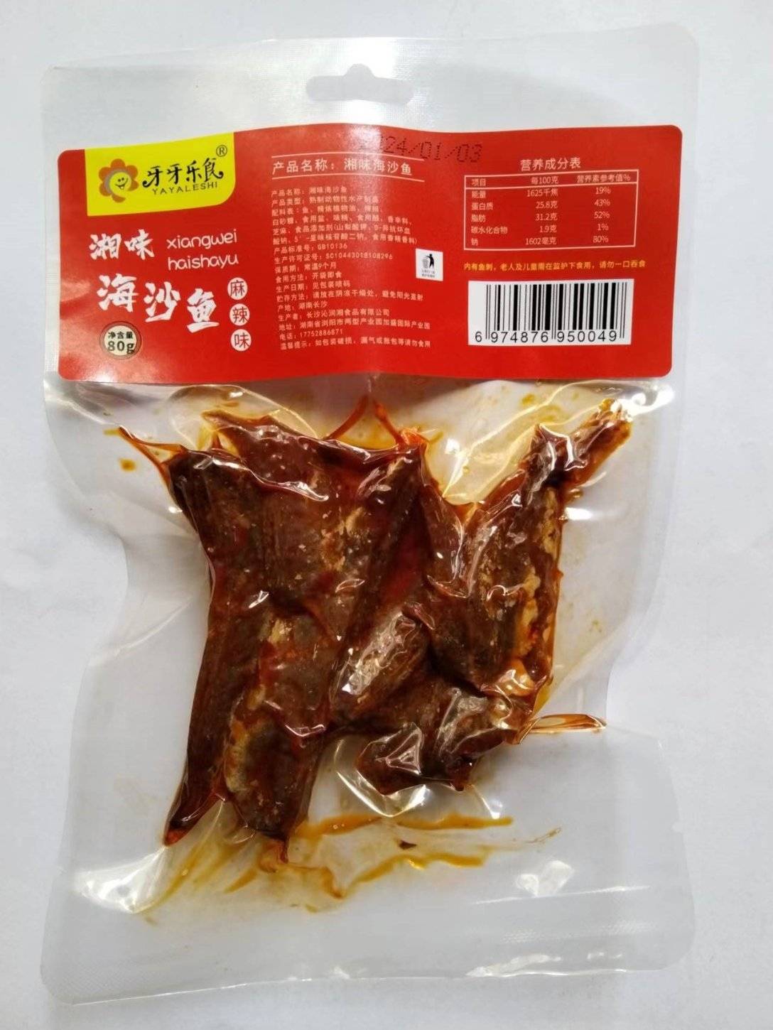 Yaya Le Shi Xiangwei тэнгисийн элс загас халуун ногоотой амт 80г (1 хайрцаг * 50 багц)