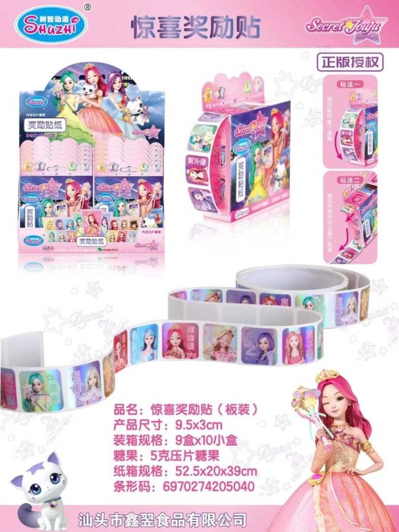 Shuzhi Animation гэнэтийн шагналын наалт 5г (1 хайрцаг * 8 дунд хайрцаг * 12 самбар)