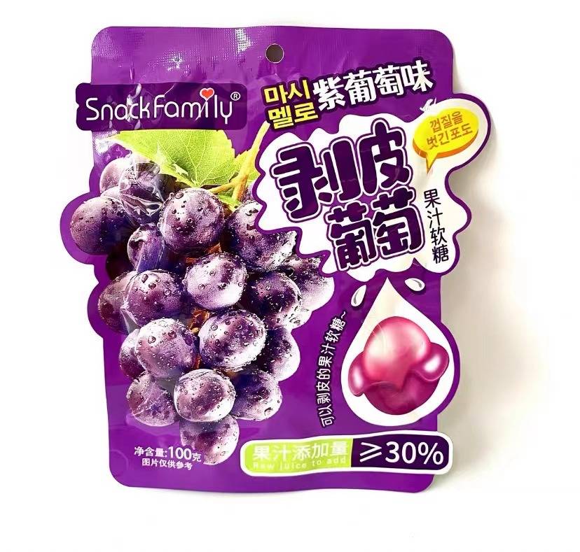 Зууш Гэр бүлийн хальс шүүс Gummies Нил ягаан усан үзэм амт 60г (1 хайрцаг * 60 багц)