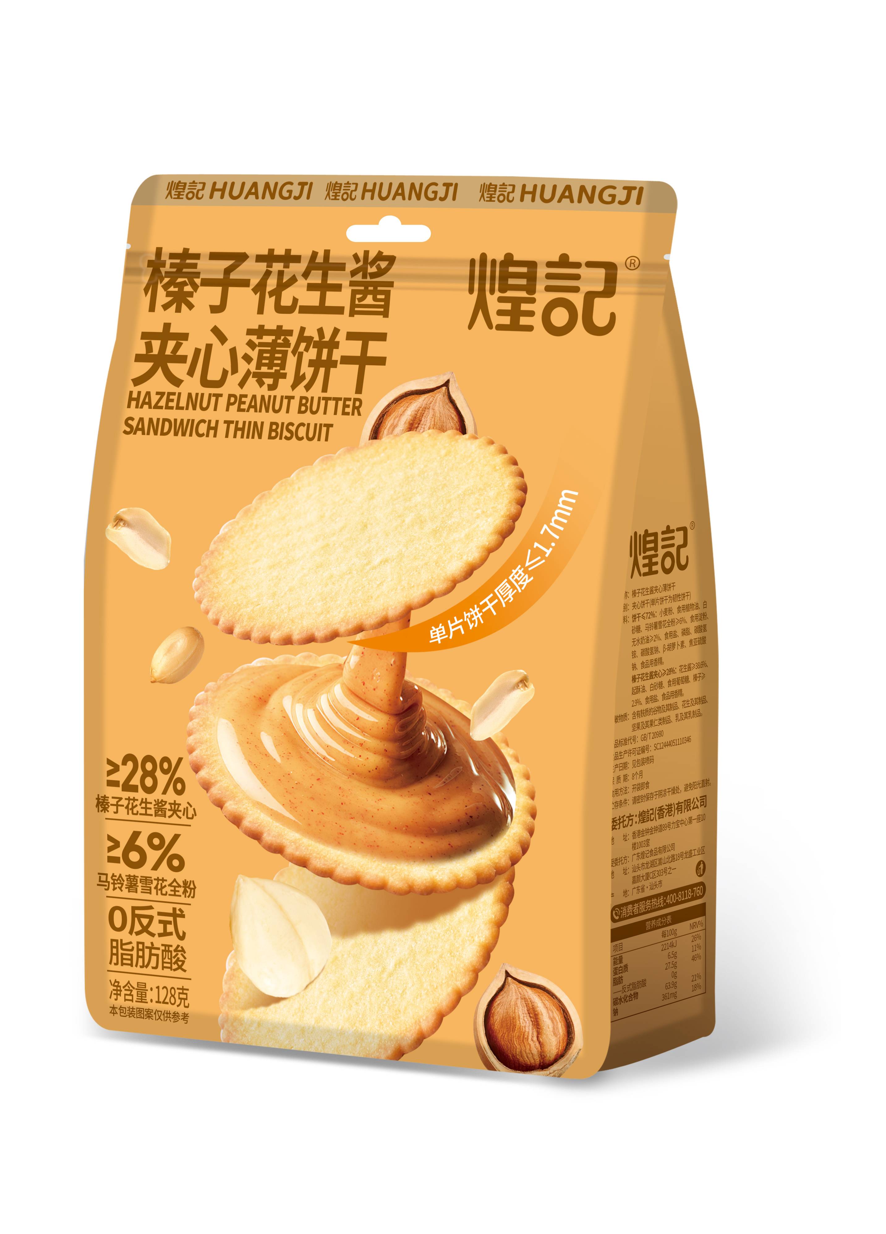 Huangji-128g Hazelnut самрын цөцгийн тос сэндвич нимгэн жигнэмэг