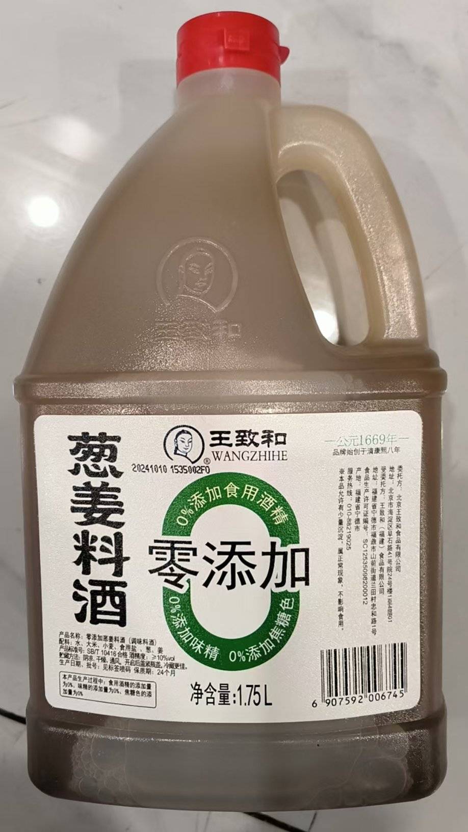 Wang Zhihe Zero Нэмсэн Сонгино ба цагаан гаа хоол хийх дарс 1.75L (1 тохиолдол * 6 шил)