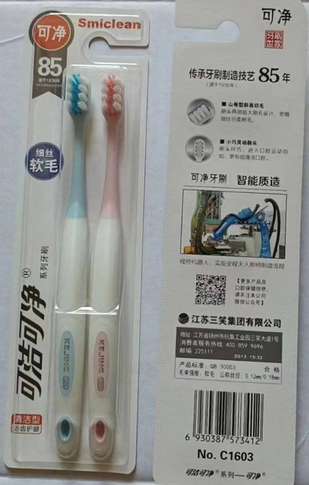 Цэвэр ба цэвэр судалтай зөөлөн үстэй давхар багц шүдний сойз C1603 (1 хайрцаг * 4 дунд хайрцаг * 12 багц)