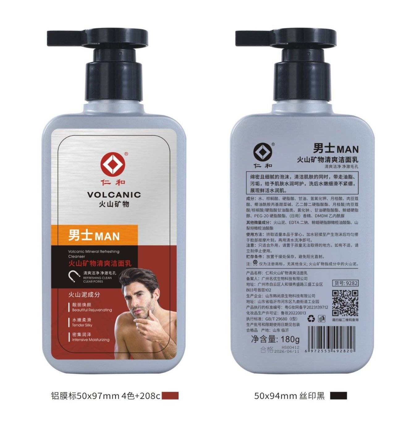 Renhe Эрэгтэйчүүдийн галт уулын эрдэс сэргээгч цэвэрлэгч хэвлэлийн лонх (Эрэгтэйчүүдийн галт уулын эрдэс сэргээгч цэвэрлэгч хэвлэлийн лонх) 180г (1 ширхэг * 192 лонх)
