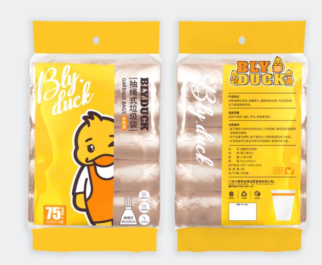 Бяцхан шар нугас 7523 нэмэлт зузаан drawstring хогны уут (45 * 50cm * 15 ширхэг * 5 өнхрөх) (1 хайрцаг * 40 боодол)
