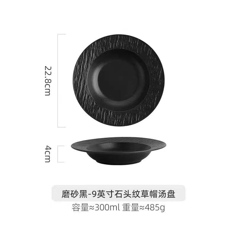 Шуурхай чулуулгийн хэв маяг 9 инчийн сүрэл малгайтай шөлний ялтс - Шинэ царцсан хар