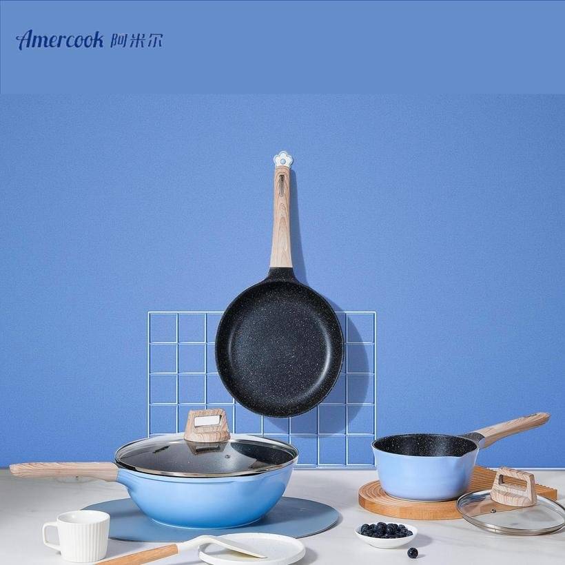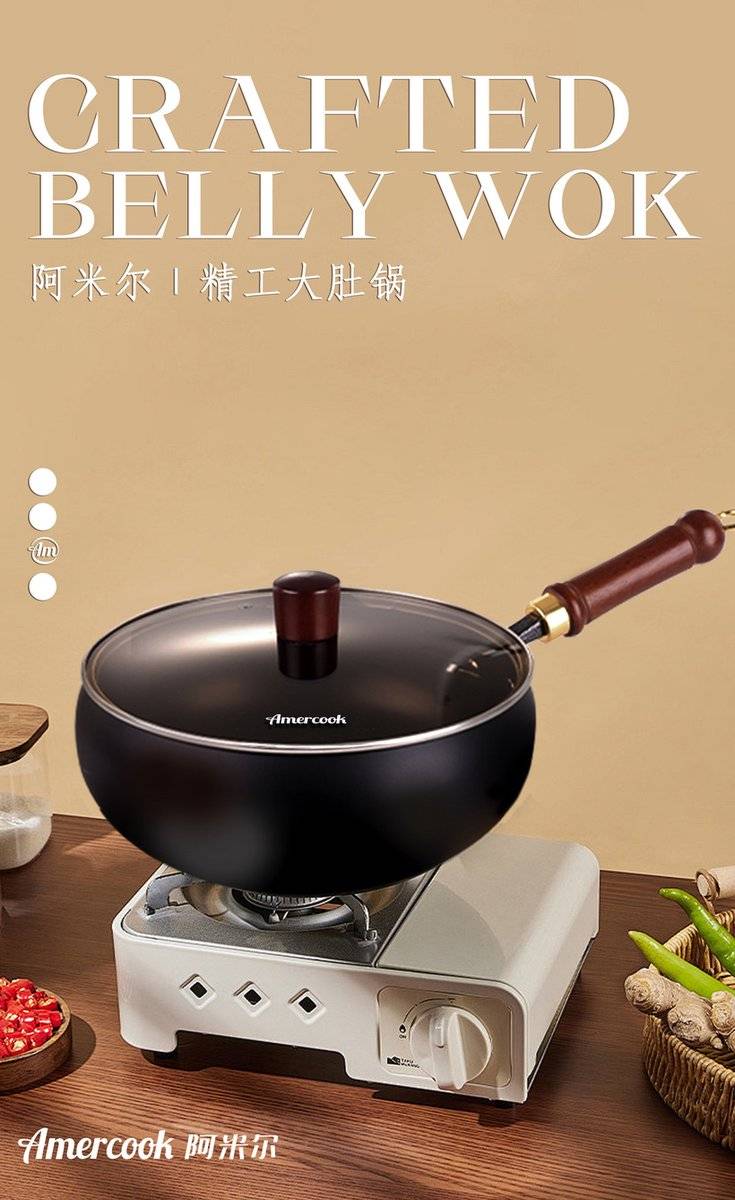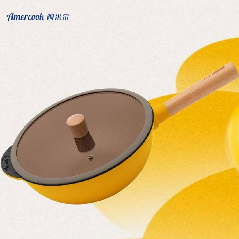 Amir-AC.6503.32RD паалан болор цутгамал төмрийн наалддаггүй wok: улаан 32cm