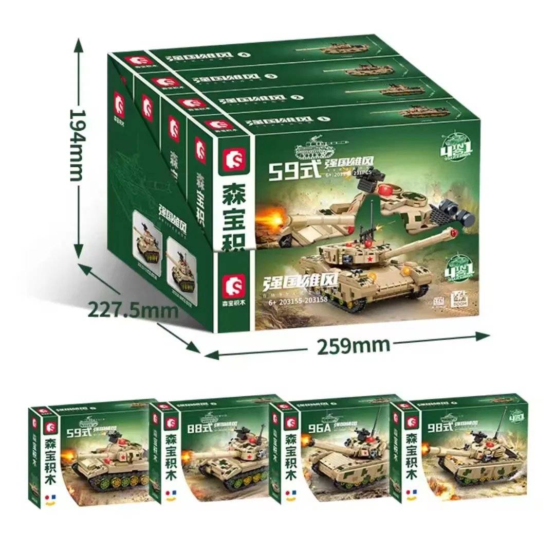 Senbao 203155-203158 Zhongbing цуврал (4 in 1) Type 99A үндсэн тулааны танк * 4